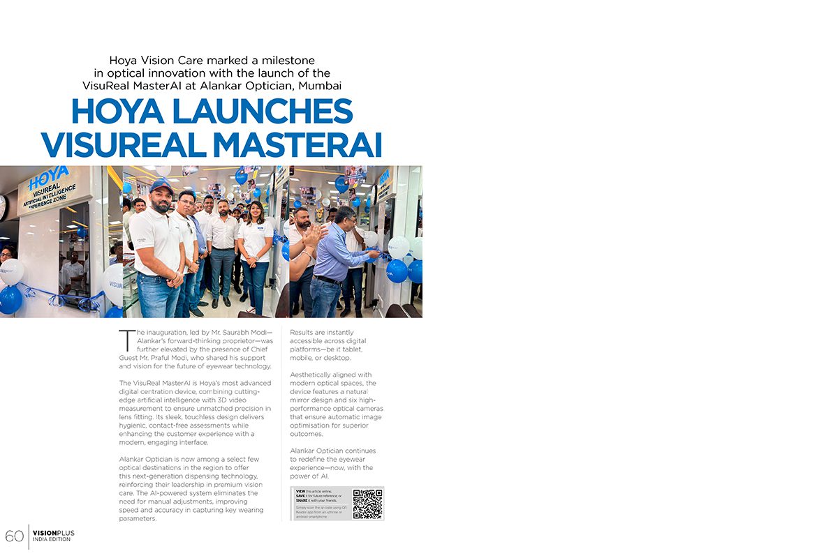 Hoya Vision Care marked a milestone in optical innovation with the launch of the VisuReal MasterAI at Alankar Optician, Mumbai