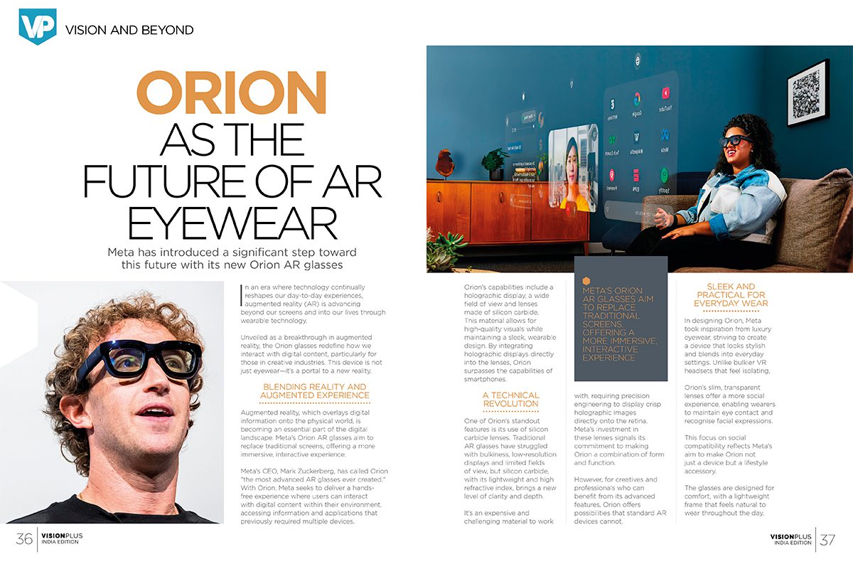 One of Orion’s standout features is its use of silicon carbide lenses. Traditional AR glasses have struggled with bulkiness, low-resolution displays and limited fields of view, but silicon carbide, with its lightweight and high refractive index, brings a new level of clarity and depth.
