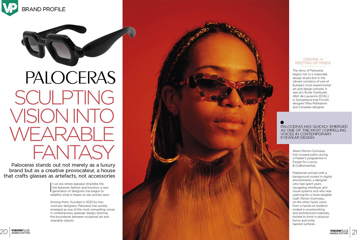 Among them, founded in 2022 by two visionary designers, Paloceras has quickly emerged as one of the most compelling voices in contemporary eyewear design, blurring the boundaries between sculptural art and wearable objects.