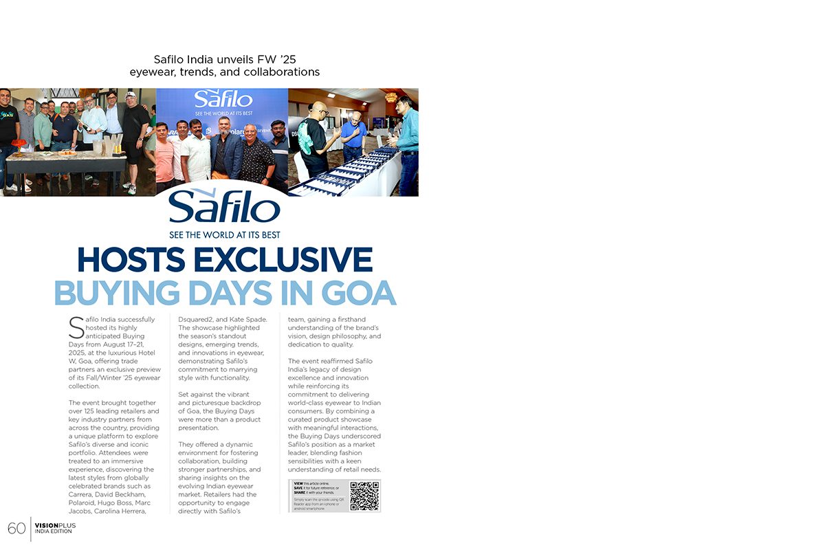 Safilo India successfully hosted its highly anticipated Buying Days from August 17–21, 2025, at the luxurious Hotel W, Goa, offering trade partners an exclusive preview of its Fall/Winter ’25 eyewear collection.
