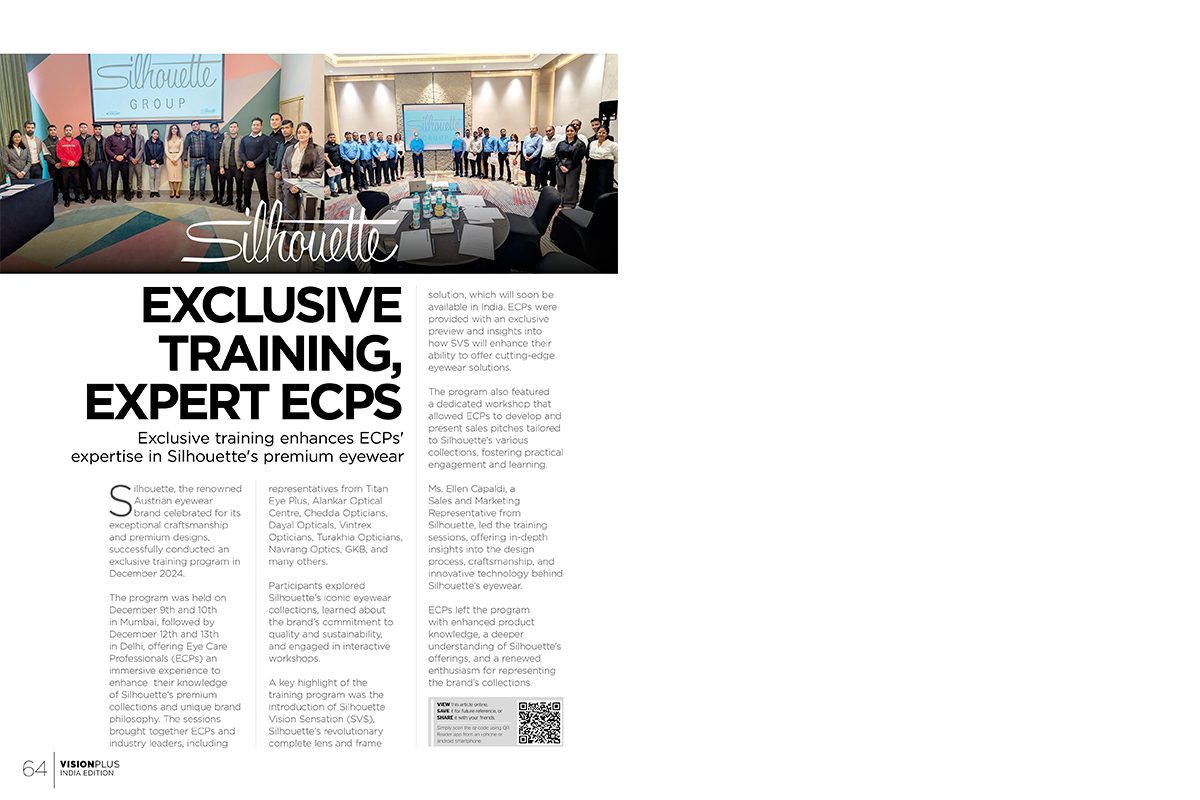 A key highlight of the training program was the introduction of Silhouette Vision Sensation (SVS), Silhouette’s revolutionary complete lens and frame solution, which will soon be available in India. ECPs were provided with an exclusive preview and insights into how SVS will enhance their ability to offer cutting-edge eyewear solutions.