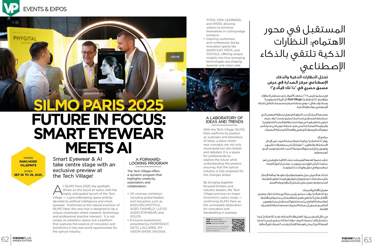 At SILMO Paris 2025, the spotlight shines on the future of optics with the highly anticipated launch of the Tech Village — a groundbreaking space entirely devoted to artificial intelligence and smart eyewear. Positioned as the natural evolution of SILMO Next, this new hub is designed to be a unique crossroads where research, technology, and professional practice intersect. It is not simply an exhibition space, but a platform that captures the essence of innovation and transforms it into real-world opportunities for the optical industry.