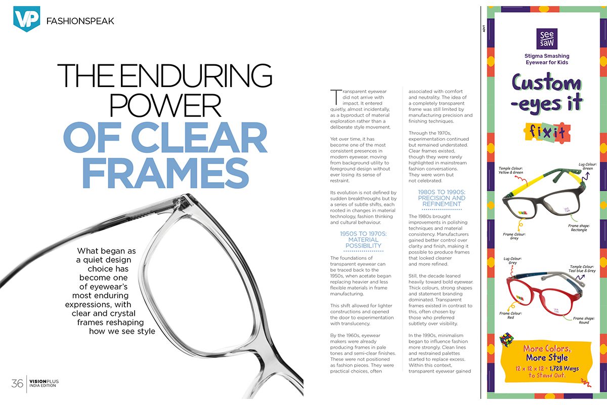 What began as a quiet design choice has become one of eyewear’s most enduring expressions, with clear and crystal frames reshaping how we see style