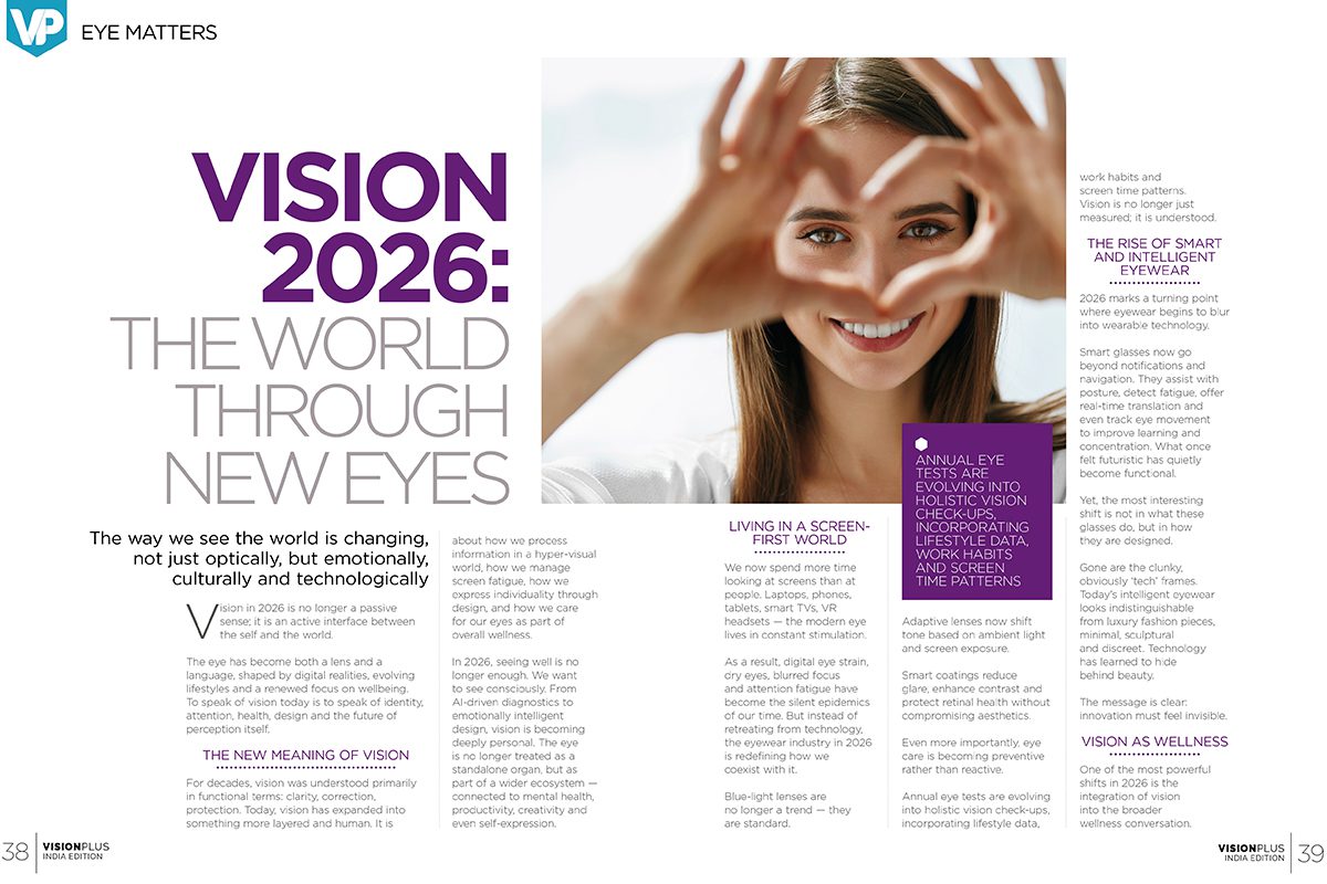 Annual eye tests are evolving into holistic vision check-ups, incorporating lifestyle data, work habits and screen time patterns. Vision is no longer just measured; it is understood.
