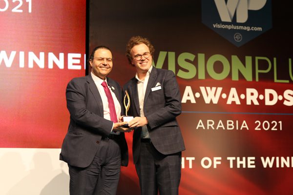 The award was received by Baudouin Sériès of ZEISS Vision Care from Saleh Al Shawa at the glitzy VP Awards Night Of the Winner show that was hosted by VisionPlus EXPO in Dubai