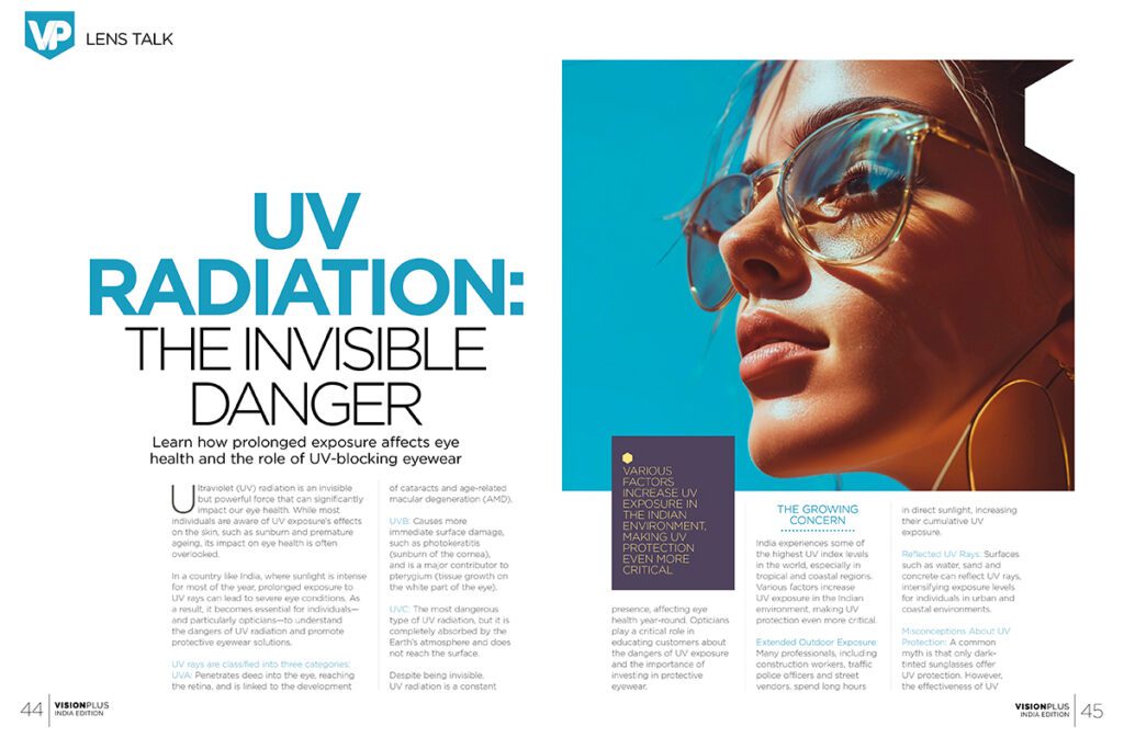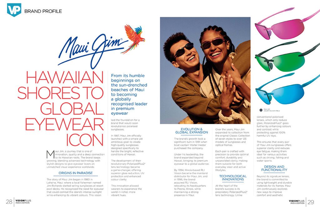 Turning to this issue, Trends spotlights bold, artistic eyewear redefining fashion. Brand Profile explores Maui Jim’s journey from the beaches of Hawaii to global eyewear leadership. Vision And Beyond delves into AI, smart lenses and personalised vision care. Lens Talk examines UV protection and its impact on eye health.
