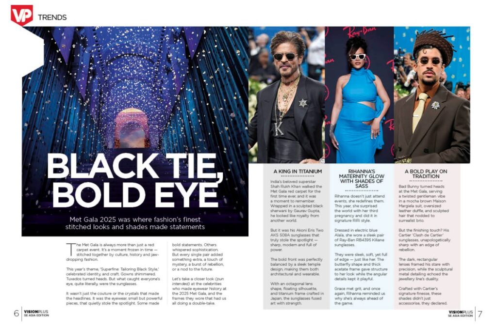 In this issue, Trends takes you to the Met Gala 2025, where fashion’s finest paired couture with statement eyewear. Brand Profile explores Blackfin Eyewear’s bold fusion of titanium precision and daring design.