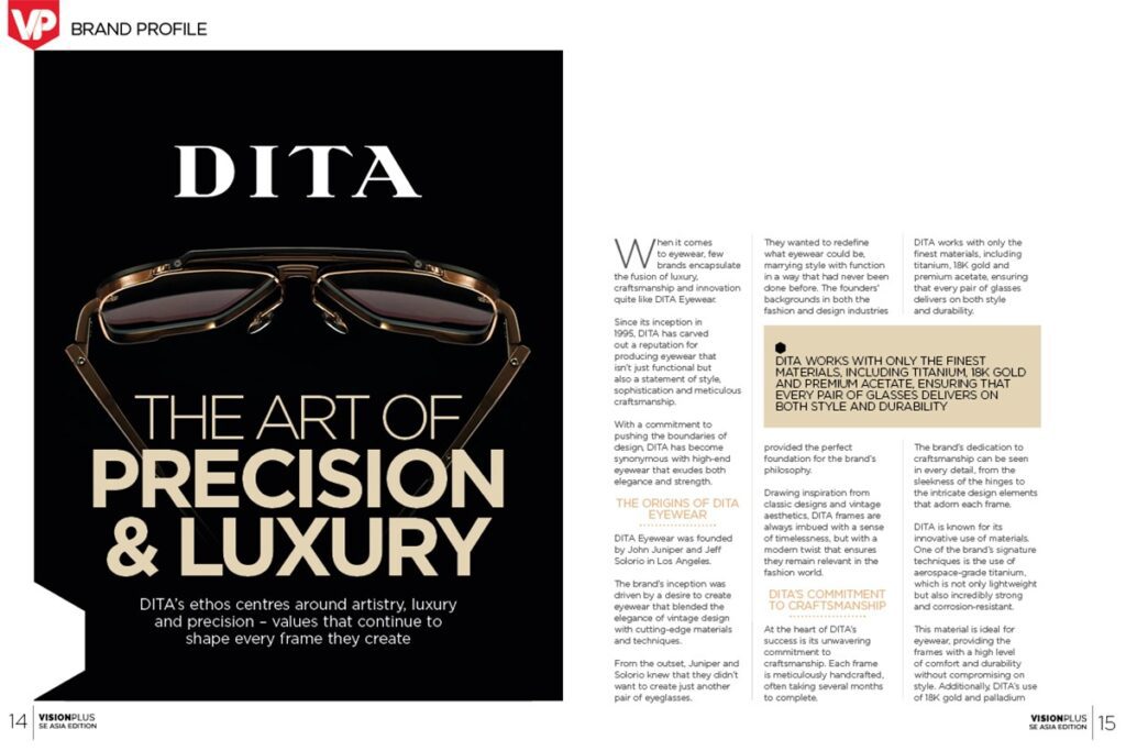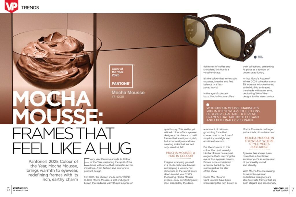 In this issue, Trends highlights Pantone’s 2025 Colour of the Year, Mocha Mousse, which adds warmth and richness to eyewear trends. In Brand Profile, explore DITA’s commitment to artistry, luxury and precision in every frame. FashionSpeak highlights the 82nd Golden Globe Awards, where eyewear blended style and cinematic magic. Vision And Beyond covers NVIDIA’s futuristic, functional device. In Lens Talk, discover the advantages of high-index lenses—thinner, lighter, and stylish.